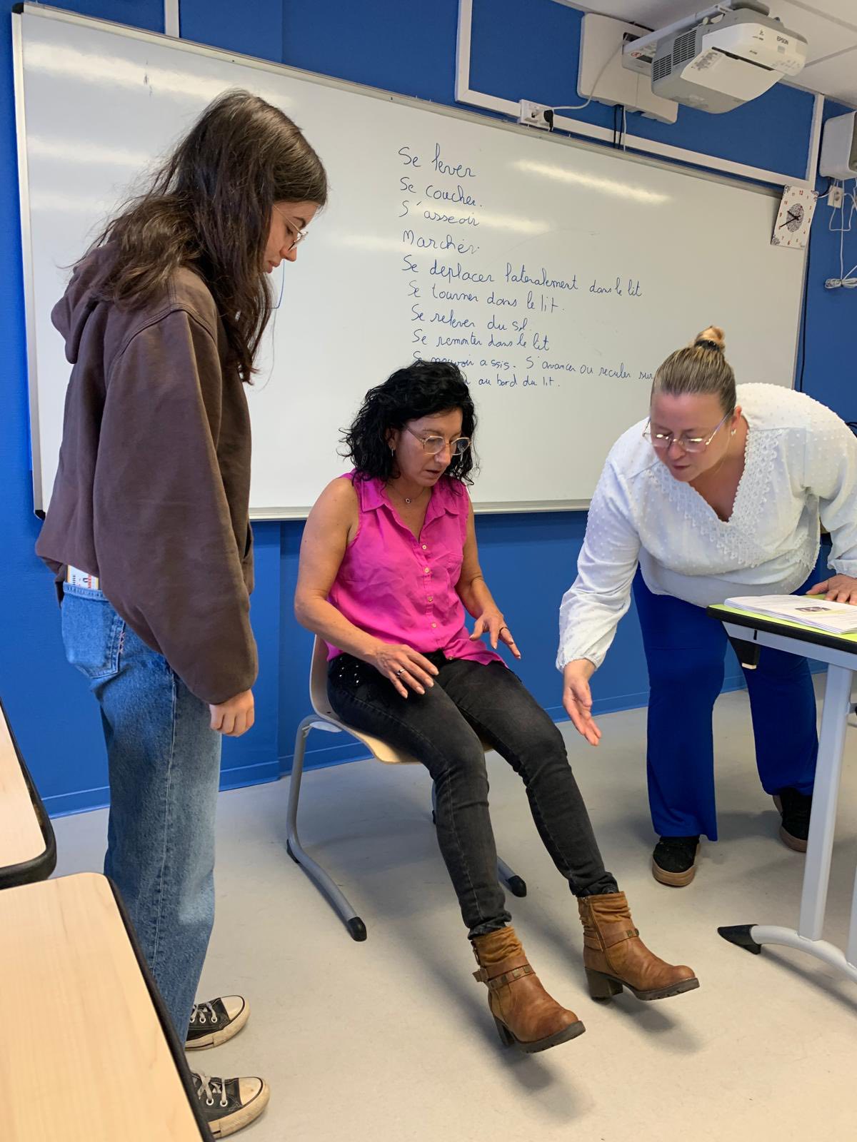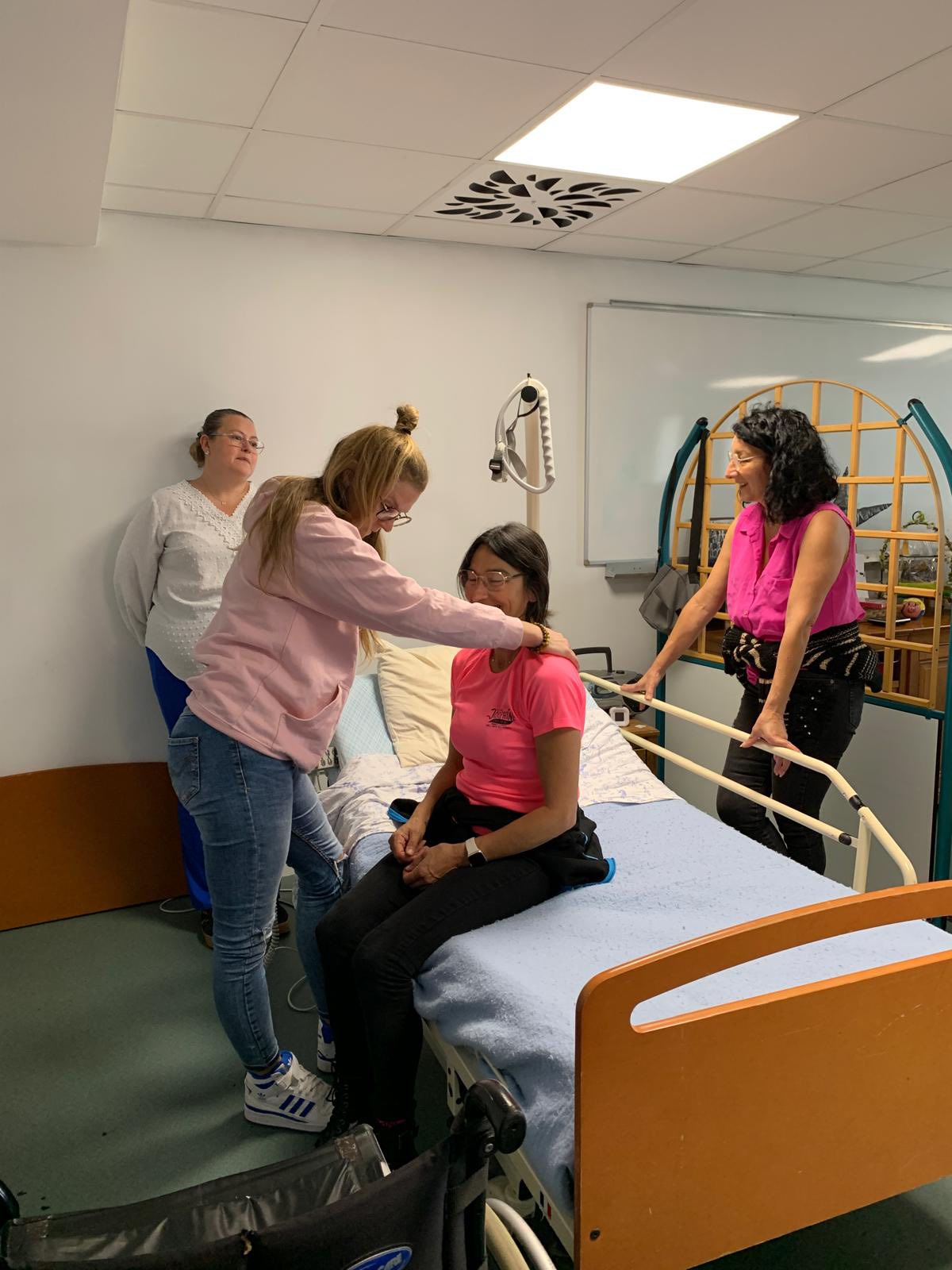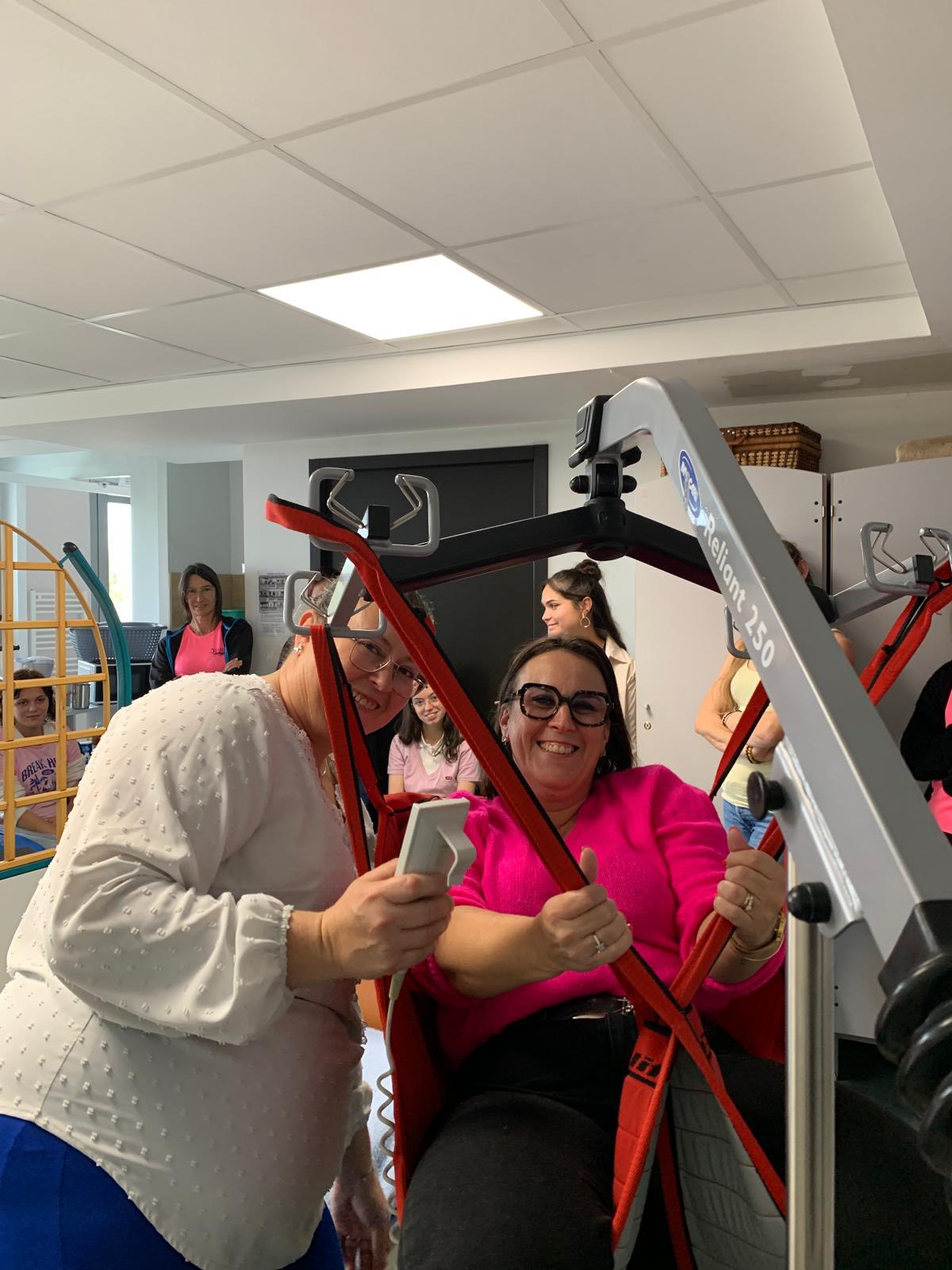 Aujourd’hui, elles ont eu le plaisir de rencontrer Cindy Batiot, formatrice en prévention des risques liés à l activité physique, qui leur a présenté les techniques de transfert des patients à l’aide de matériel adapté.