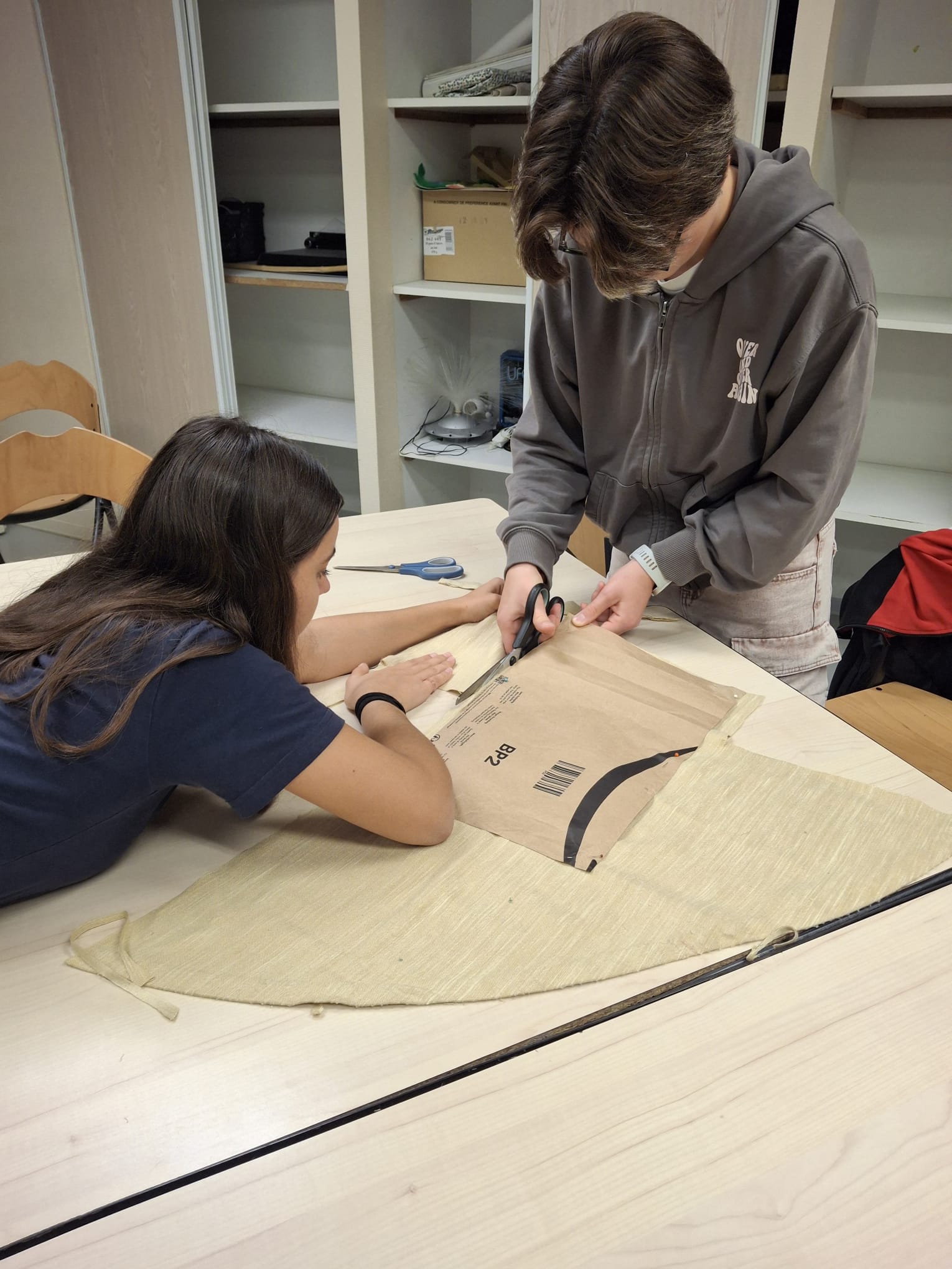 Les élèves ont participé à une veillée couture où ils ont découpé du tissu pour fabriquer des rangements pour les lits. Merci à Michelle pour son aide précieuse tout au long de l’activité !