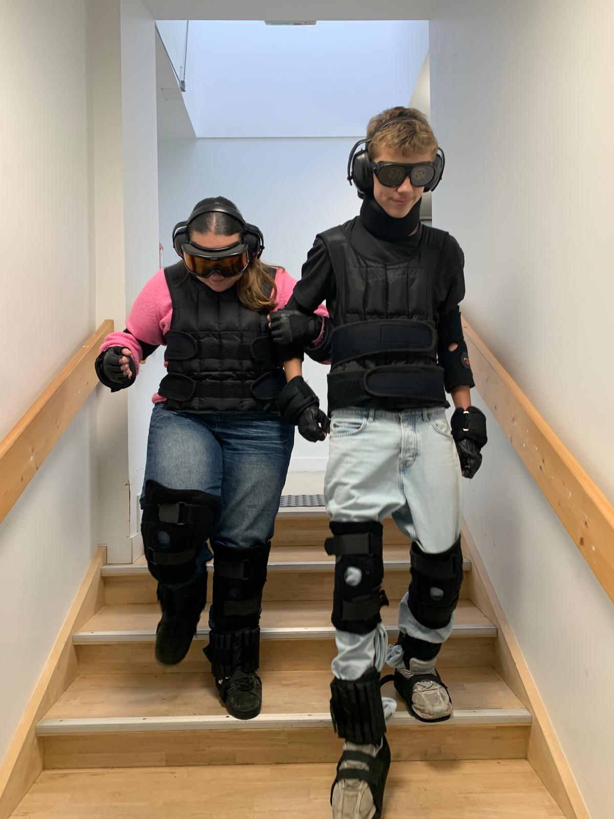 Encadrés par Pascaline et par une élève ayant participé au forum des gestes et métiers, nous avons été équipés de différents accessoires pour mieux comprendre les difficultés rencontrées au quotidien.