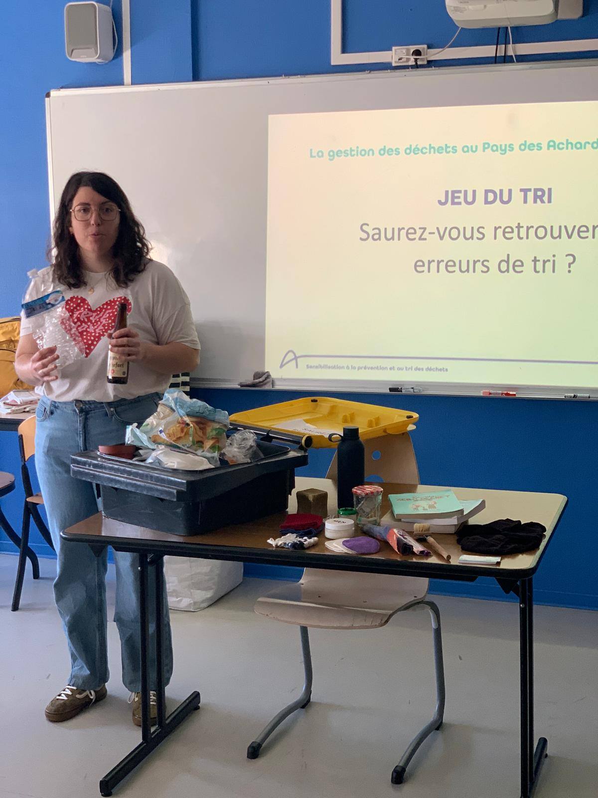 Ce matin, nous avons eu le plaisir d’accueillir Nolwenn Rautureau de la Communauté de communes des Achards pour une intervention enrichissante sur les différents modes de tri des déchets. S’en est suivi un atelier autour des produits écoresponsables 🌱